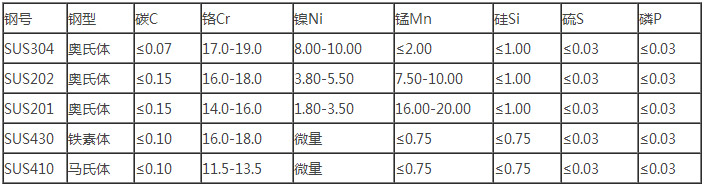 材質:奧氏體不銹鋼, 鐵素體不銹鋼,馬氏體不銹鋼